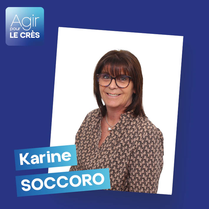 Madame Karine SOCCORO (Conseillère Municipale sortante) – 55 ans – Adjoint Administratif « J’habite au Crès depuis 1997 et cette commune